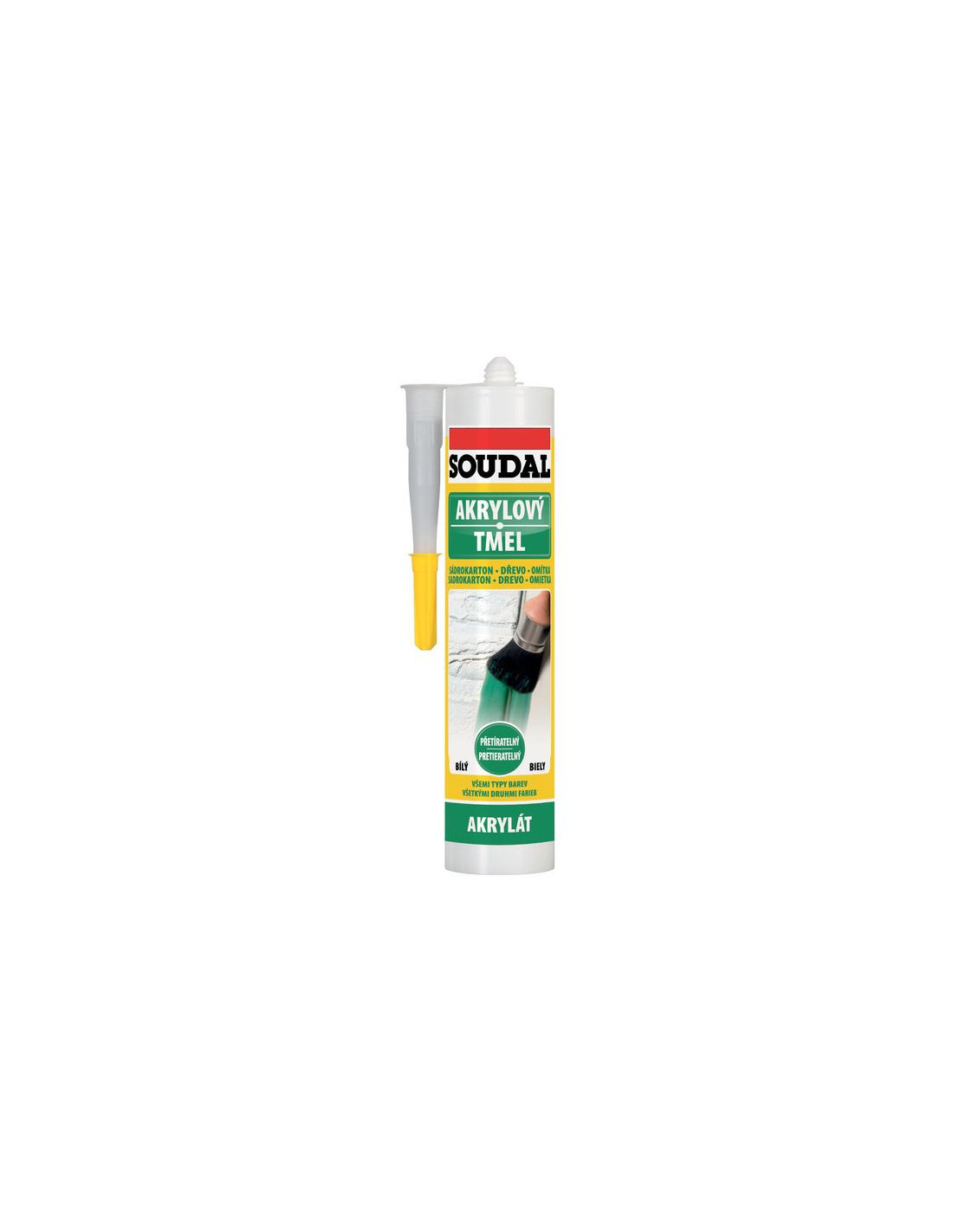 Tmel akrylát je určen pro tmelení a těsnění spár a trhlin v omítkách, koutové spoje stěn a stropů, spáry kolem rámů oken a dveří, schodů, podlahových a jiných dekorativních lišt apod. Po vytvrzení je přetíratelný běžnými barvami.