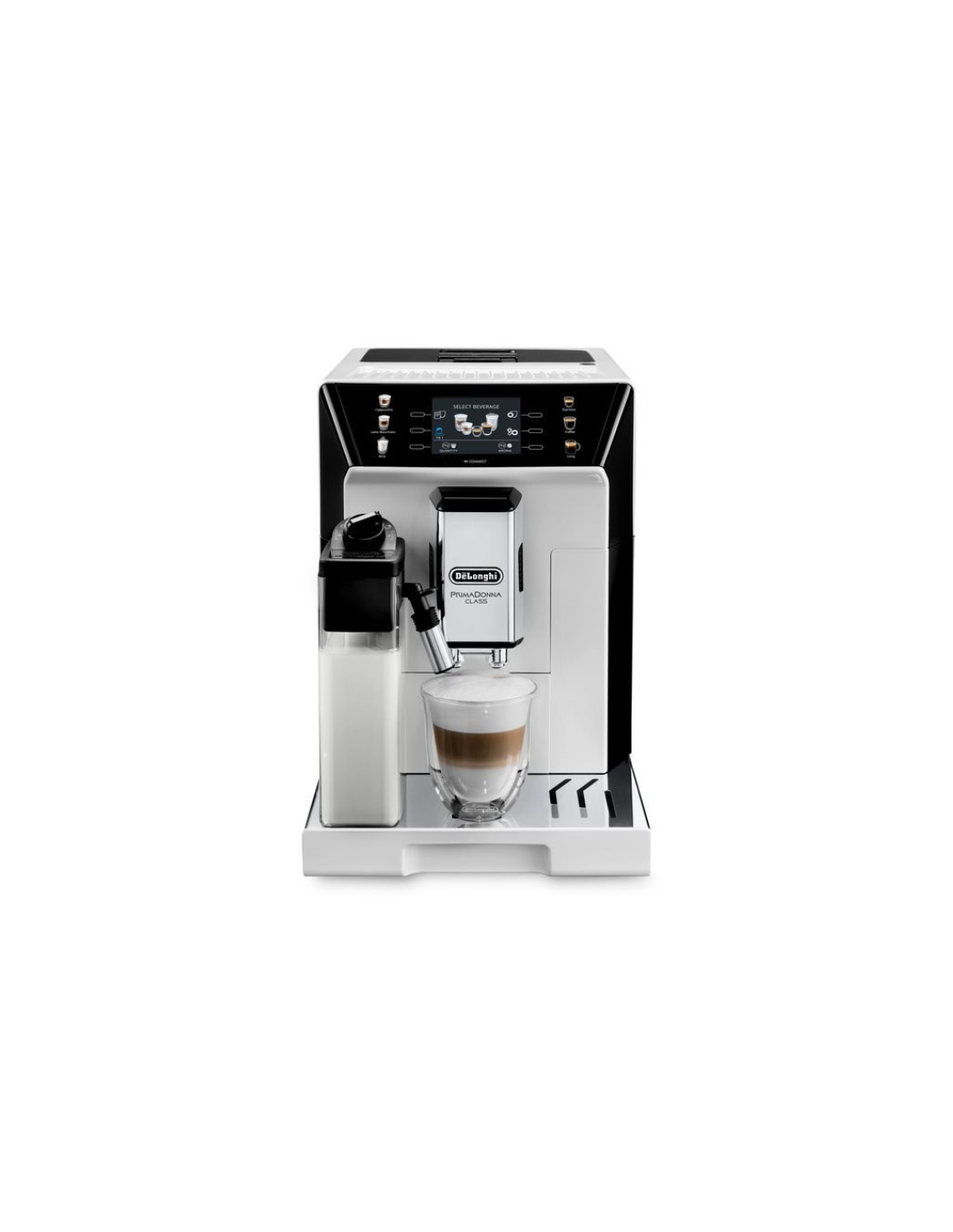 Automatický kávovar tlak 19 bar, automatické vypnutí, cappuccino a latte, displej, funkce horké vody, chytrý, mléčný systém, nastavení množství kávy, nastavení množství vody, odvápňovací systém, parní tryska, příprava dvou šálků najednou, režim úspory energie a samočisticí systém, objem nádržky na vodu 2 l, velikost zásobníku mlýnku 380 g, příkon 1450 W, šířka 26 cm, výška 36,1 cm, hloubka 46,9 cm, hmotnost 13 kg