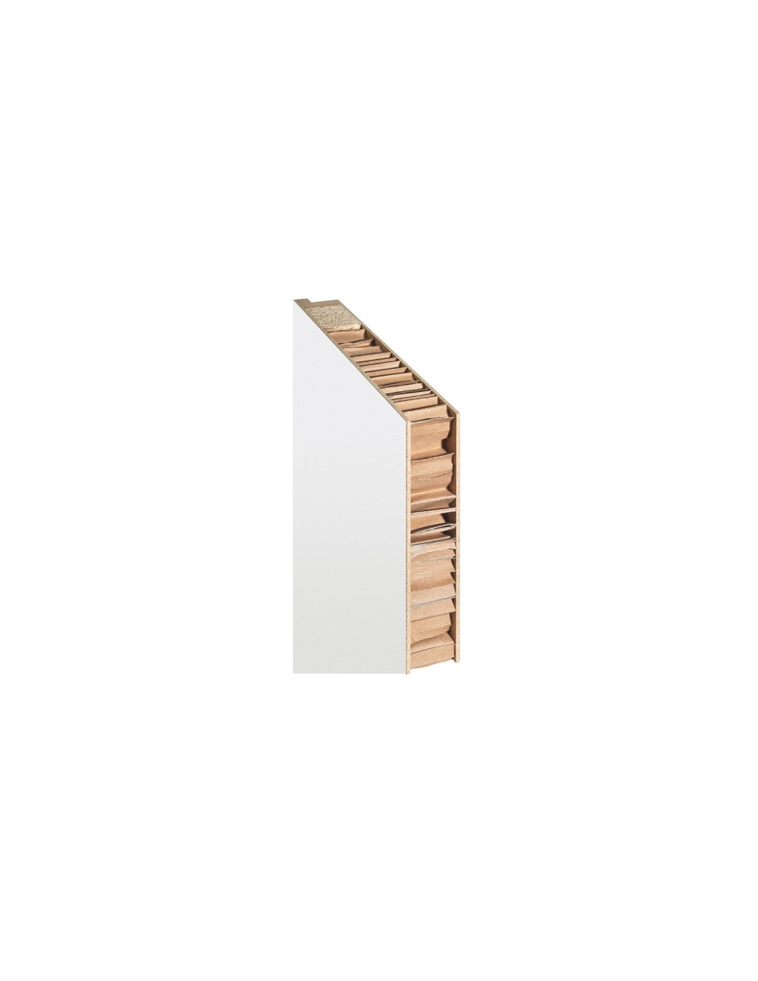 Dveřní křídlo určené do interiérů, je tvořené dveřním rámem z MDF materiálů oboustranně opláštěném HDF deskami.Výplň voština, nejběžněji využívaná výplň do interiérových dveří. Jedná se o tvrzený vrstvený papír ve tvaru včelích plástev (šestiúhelníků) s průměrem oka 25 mm. Hladký povrch dveřního pláště je opatřen lakem v bílé barvě a prosklení je provedeno ve variantě kůra čirá. Dveře jsou standardně opatřeny mezipokojovým zámkem s klíčem a třemi dveřními závěsy (panty).