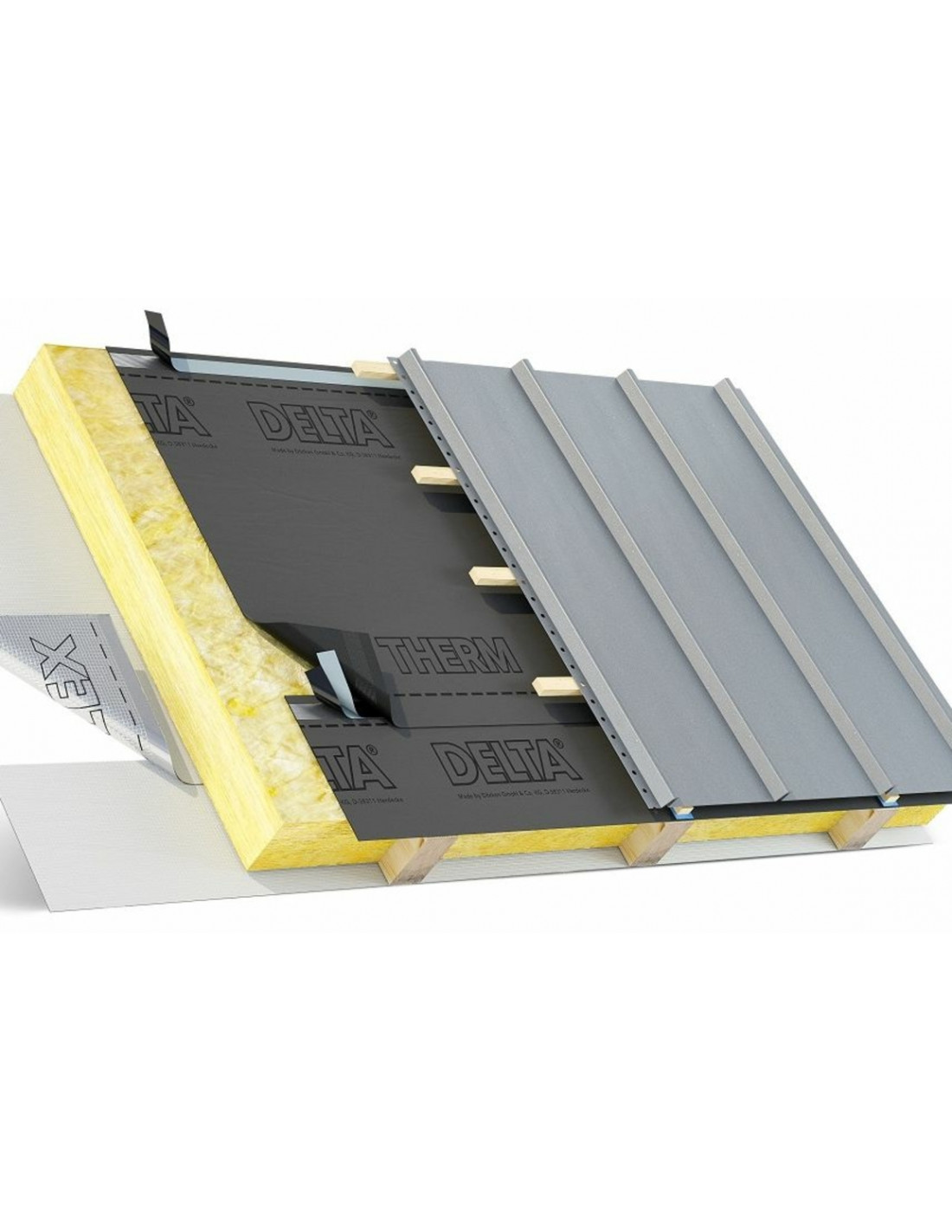 Teplotně vysoce stabilní podstřešní membrána s výrazně vyšší odolností proti termooxidačnímu stárnutí. Speciálně určená pod plechové střešní krytiny, použitelná i pod klasickou skládanou taškovou krytinu. Ideálně použitelná pod pod plechové krytiny, kde je zatížení teplotou výrazně vyšší, než u klasických tašek.Teplotně stabilizovaná podstřešní membrána s výrazně vyšší odolností proti termooxidačnímu stárnutí (90 dní při +150°C) - pro srovnání s běžnými fóliemi (90 dní pouze při +70°C). DELTA®-THERM PLUS splňuje požadavky evropské požární normy pro třídu B-s1, d0 a je tedy těžko hořlavý. Povrchová úprava „Anti-Blend“ zabraňuje nepříjemnému odrazu světla a oslnění i za extrémního slunečního svitu.
